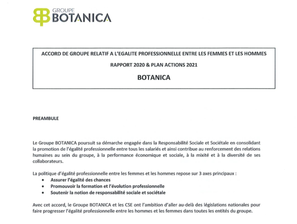 Déclaration de l'index de l'égalité professionnelle BOTANICA 2025